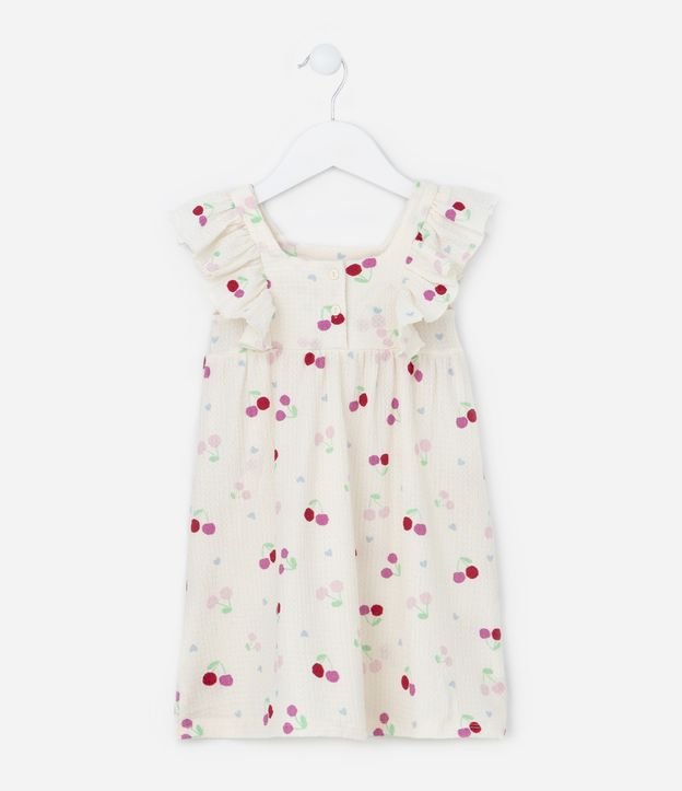 Vestido Infantil Texturizado com Estampa de Moranguinhos - Tam 1 a 5 anos RESGATAR