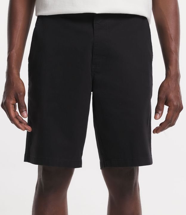 Bermuda Reta em Sarja com Cós Elástico e Textura