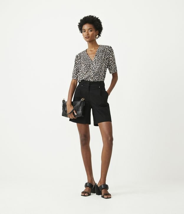 Short Runner em Linho com Estampa com Cordinha e Estampa de Folhagem RESGATAR