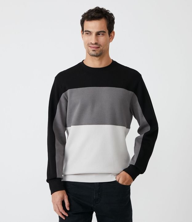 Blusão Fechado Comfort em Algodão com Recortes Contrastantes