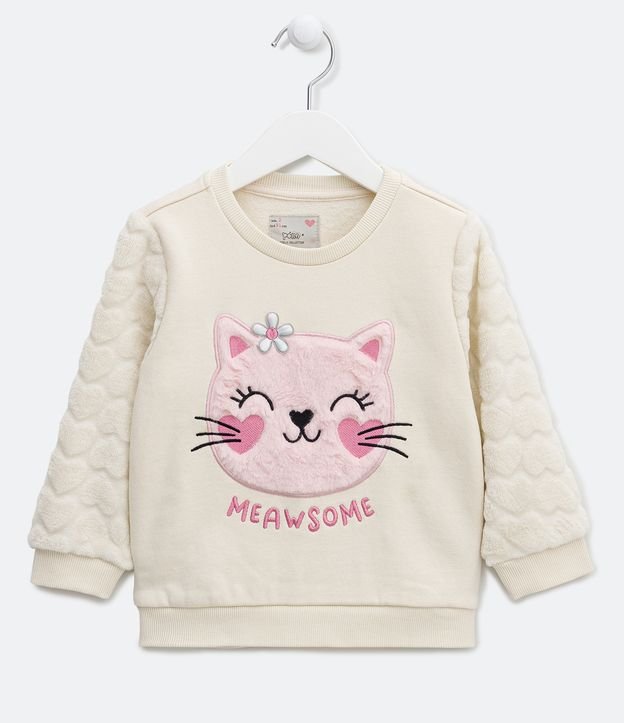 Blusão Infantil Moletom com Bordado de Coração e Recortes - Tam 1 a 5 Anos