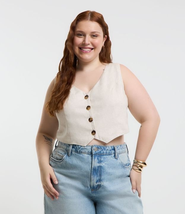 Colete Alfaiataria em Viscolinho com Botões e Bolsos Curve & Plus Size RESGATAR