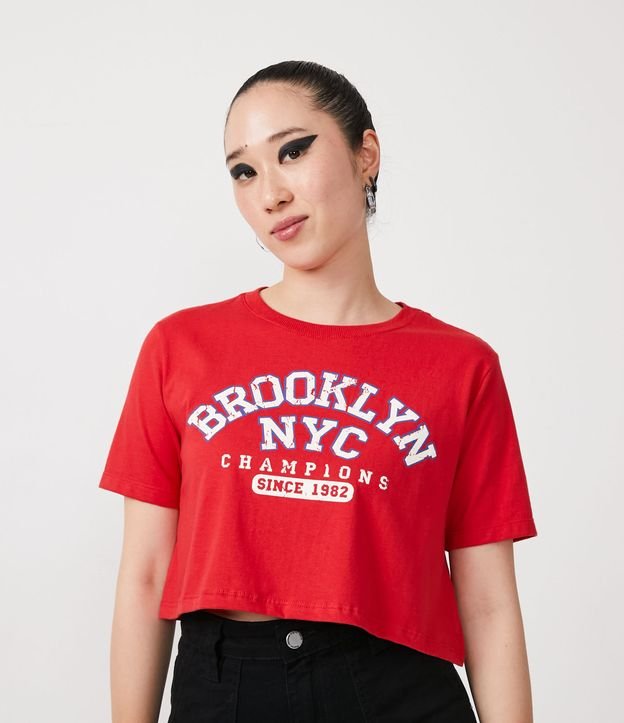 Blusa Cropped em Algodão com Manga Curta e Lettering Los Angeles