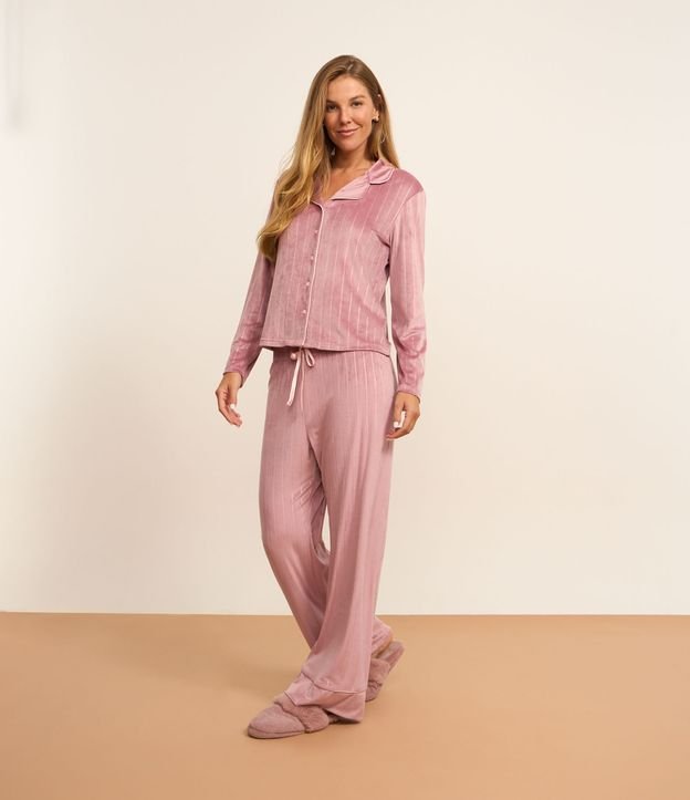 Pijama Americano Longo com Estampa Listrada e Bolsinho RESGATAR