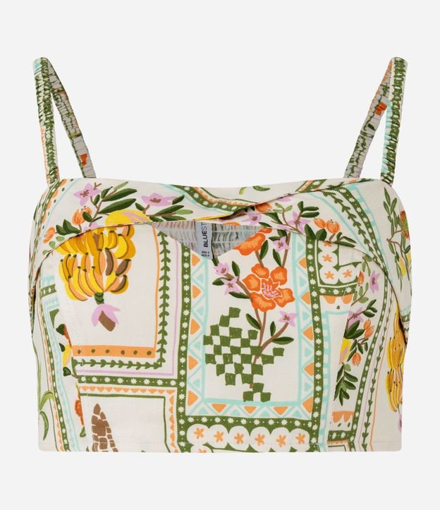 Blusa Cropped em Ribana com Manga Ampla e Estampa Flores e Passáros RESGATAR