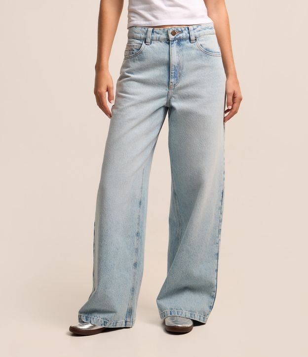 Calça Wide Leg em Jeans com Transpasse no Cós e Pregas RESGATAR