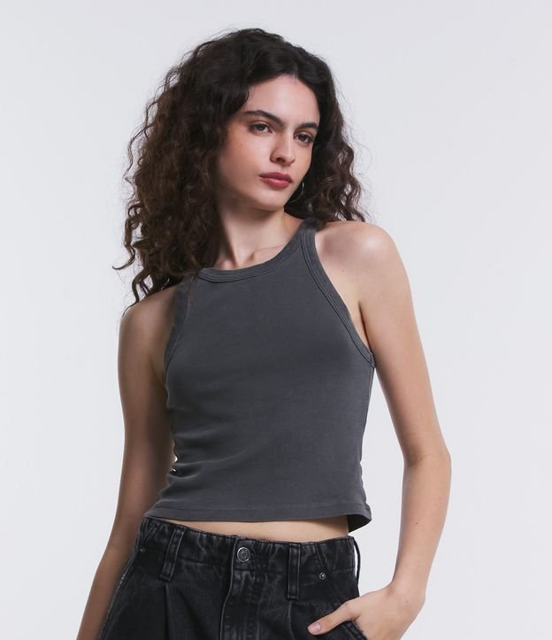 Blusa Regata em Viscose com Ponto Trabalhado na Gola e Cavas
