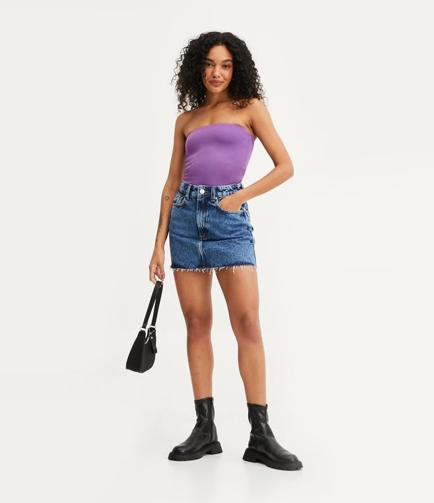 Saia Evasê New Midi em Jeans Delavê com Barra Assimétrica RESGATAR