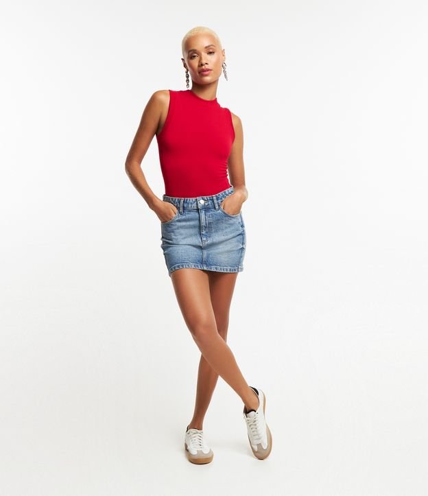 Saia Curta em Jeans com Tachinhas Aplicadas Curve & Plus Size RESGATAR
