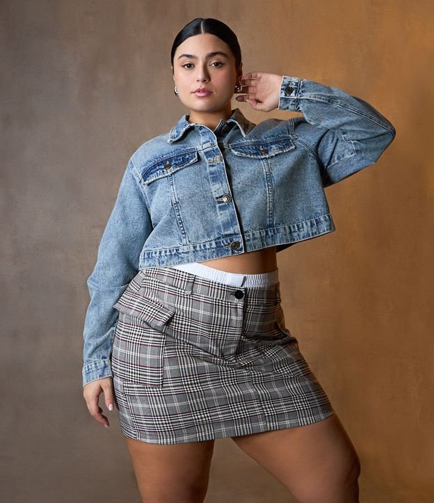 Jaqueta Overshirt em Jeans com Bolso Cargo e Botões Contrastantes Curve & Plus Size RESGATAR