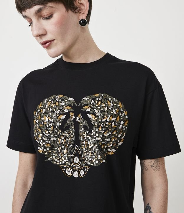 Camiseta Alongada em Algodão com Estampa Dia de Feira