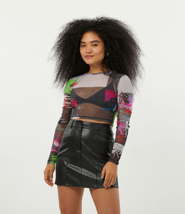 Blusa Cropped em Viscose com Estampa Étnica e Decote Coração RESGATAR