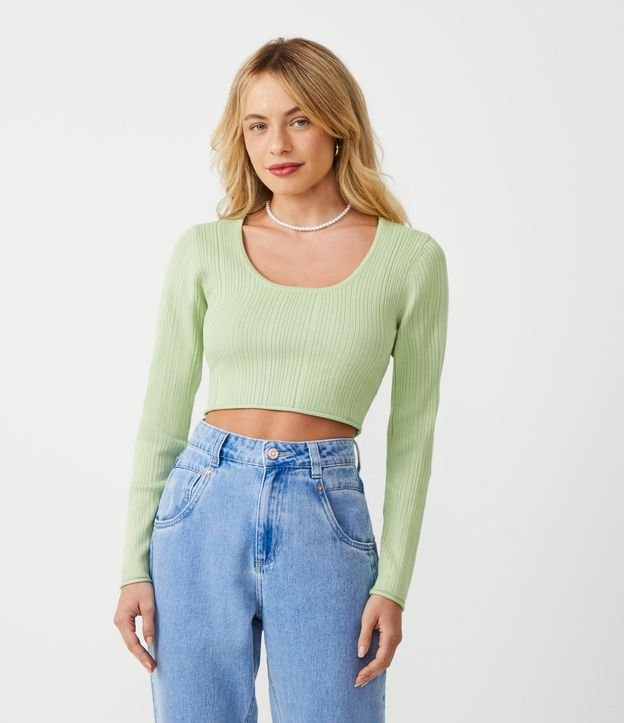 Blusa Cropped em Viscose Canelada com Manga Longa e Busto Estruturado RESGATAR