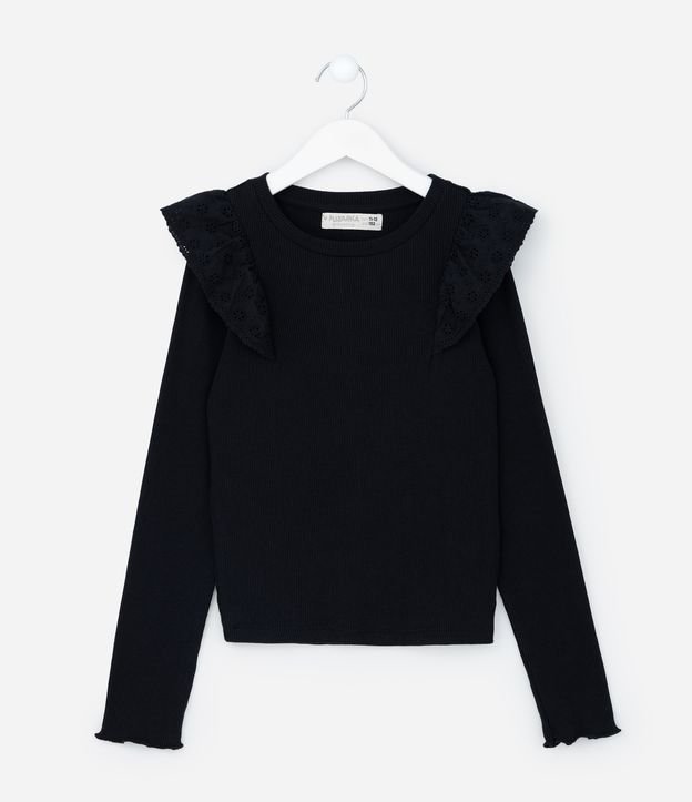 Blusa Infantil em Ribana com Sobreposição de Renda - Tam 5 a 14 Anos RESGATAR