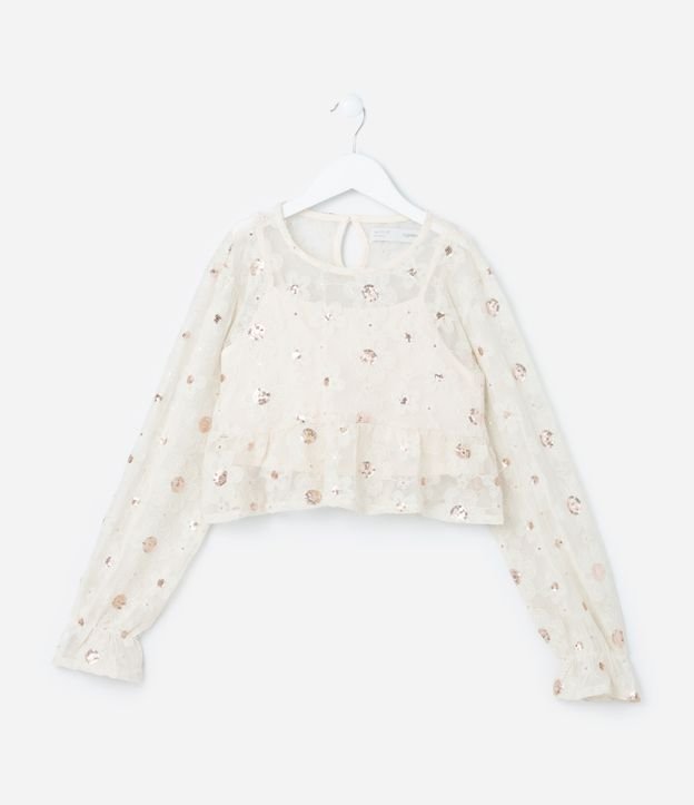 Blusa Infantil em Tule com Sobreposição - Tam 5 a 14 Anos RESGATAR