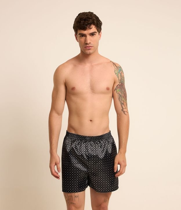 Cueca Samba Canção Acetinada com Estampa de Quadradinhos