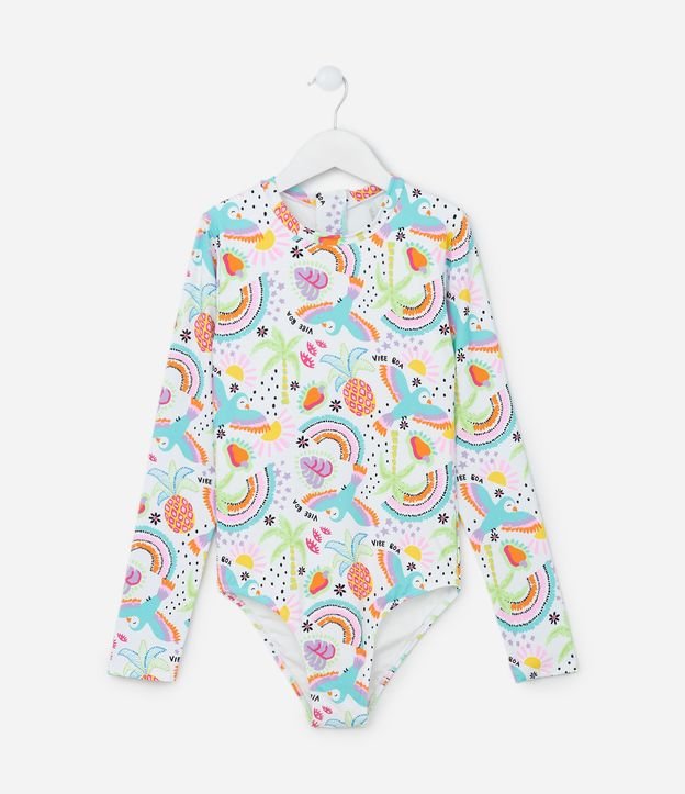 Maiô Infantil com Estampa Tropical e Recorte Vazado - Tam 5 a 14 Anos RESGATAR