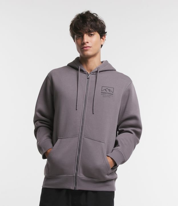 Casaco Canguru em Moletom com Capuz e Estampa de Montanha RESGATAR