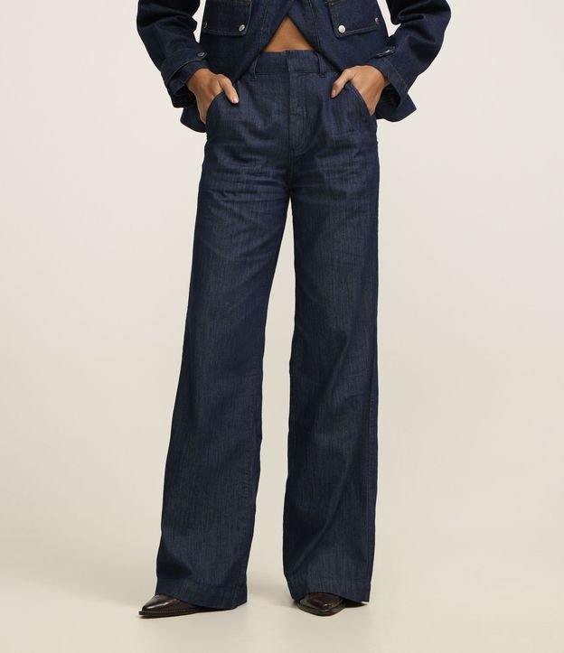 Calça Wide Leg em Jeans com Recorte e Cinto com Fivela RESGATAR