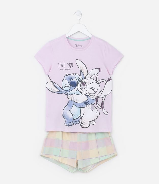Pijama Curto Infantil com Poá com Estampa Stitch - Tam 5 a 14 Anos RESGATAR