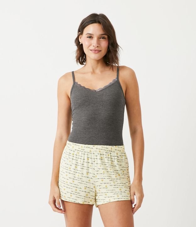 Pijama Macaquinho em Meia Malha com Decote Rendado e Botões Frontais RESGATAR