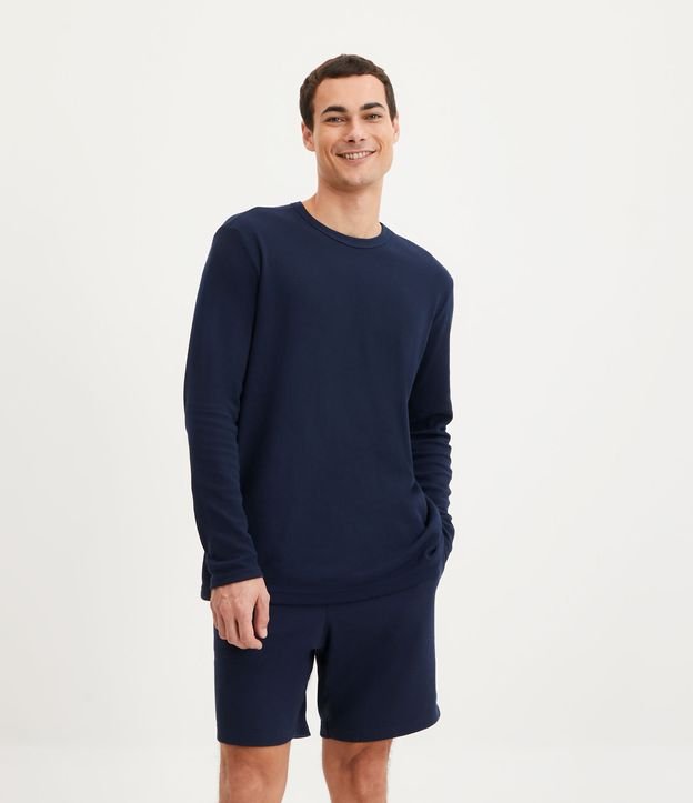 Bermuda de Pijama em Algodão com Textura Waffle e Cordão