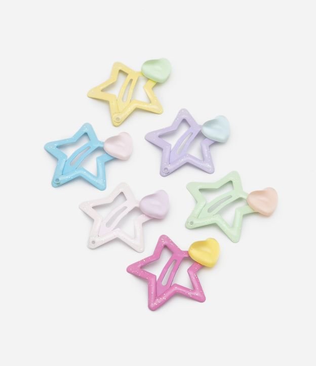 Kit 06 Presilhas de Cabelo Infantis com Coração e Brilhos RESGATAR