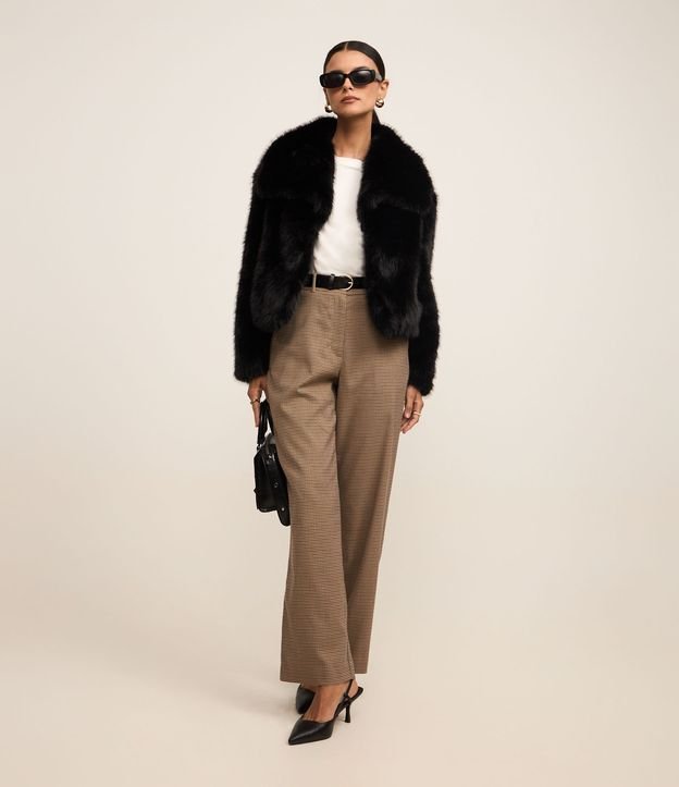 Calça Reta Cintura Alta em Tricô com Ponto Efeito Crochê RESGATAR