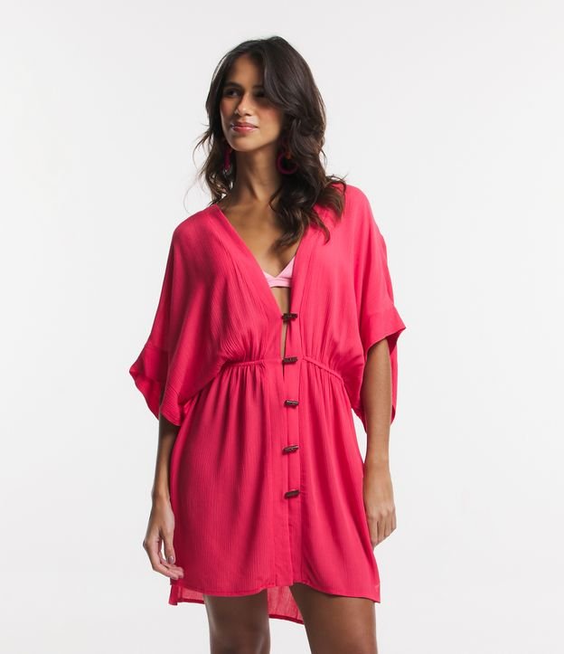 Saída de Praia Camisa Chemise em Viscose com Gola Lapela e Abotoamento RESGATAR
