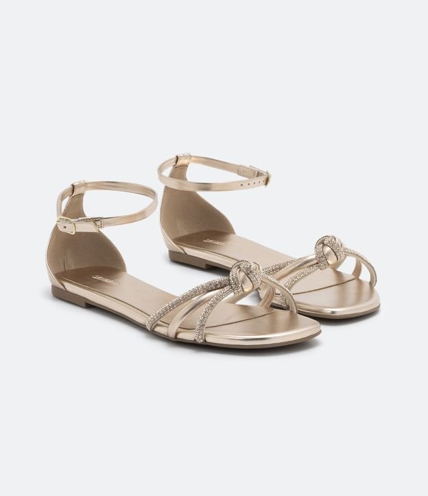 Sandália Rasteira com Tiras Finas Cravejadas