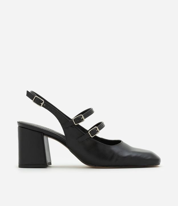 Sapato Boneca em PU com Tiras Duplas e Bico Quadrado