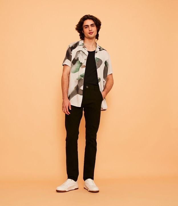 Calça Slim em Sarja com Passantes Largos e Presilha com Botão