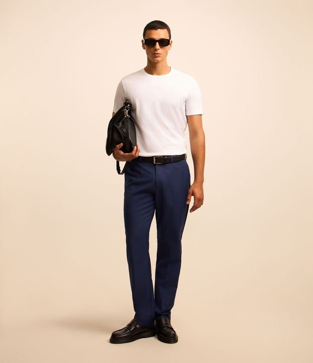 Calça Social em Microfibra com Estampa Listras Risca de Giz RESGATAR