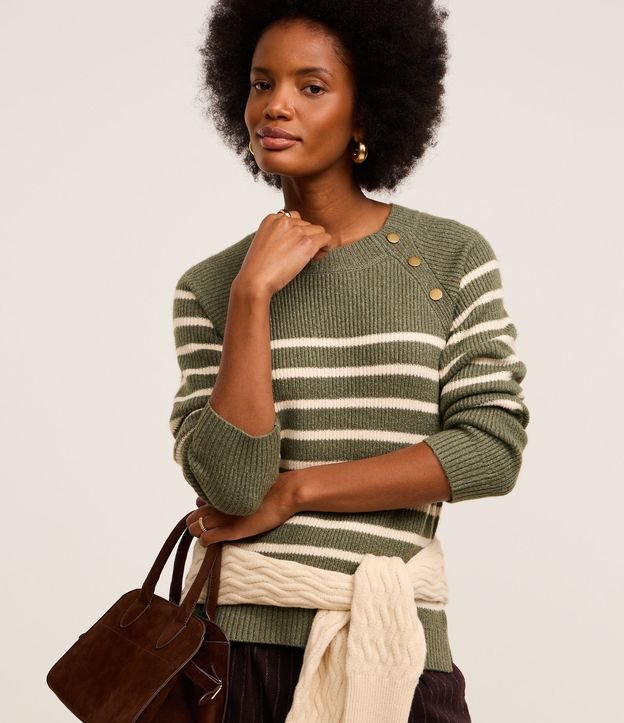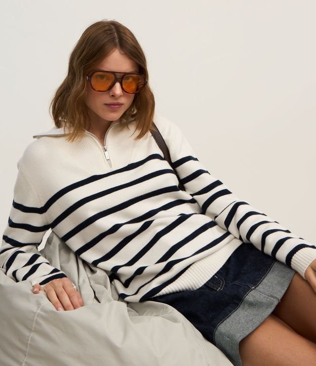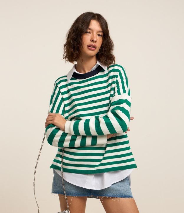 Suéter em Tricô com Cava Deslocada e Listras RESGATAR