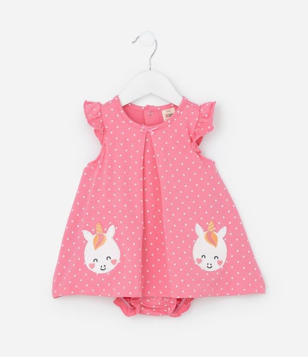 Vestido Body Infantil com Estampa Poá e Bordado de Cereja com Rostinho - Tam 0 a 18 meses RESGATAR